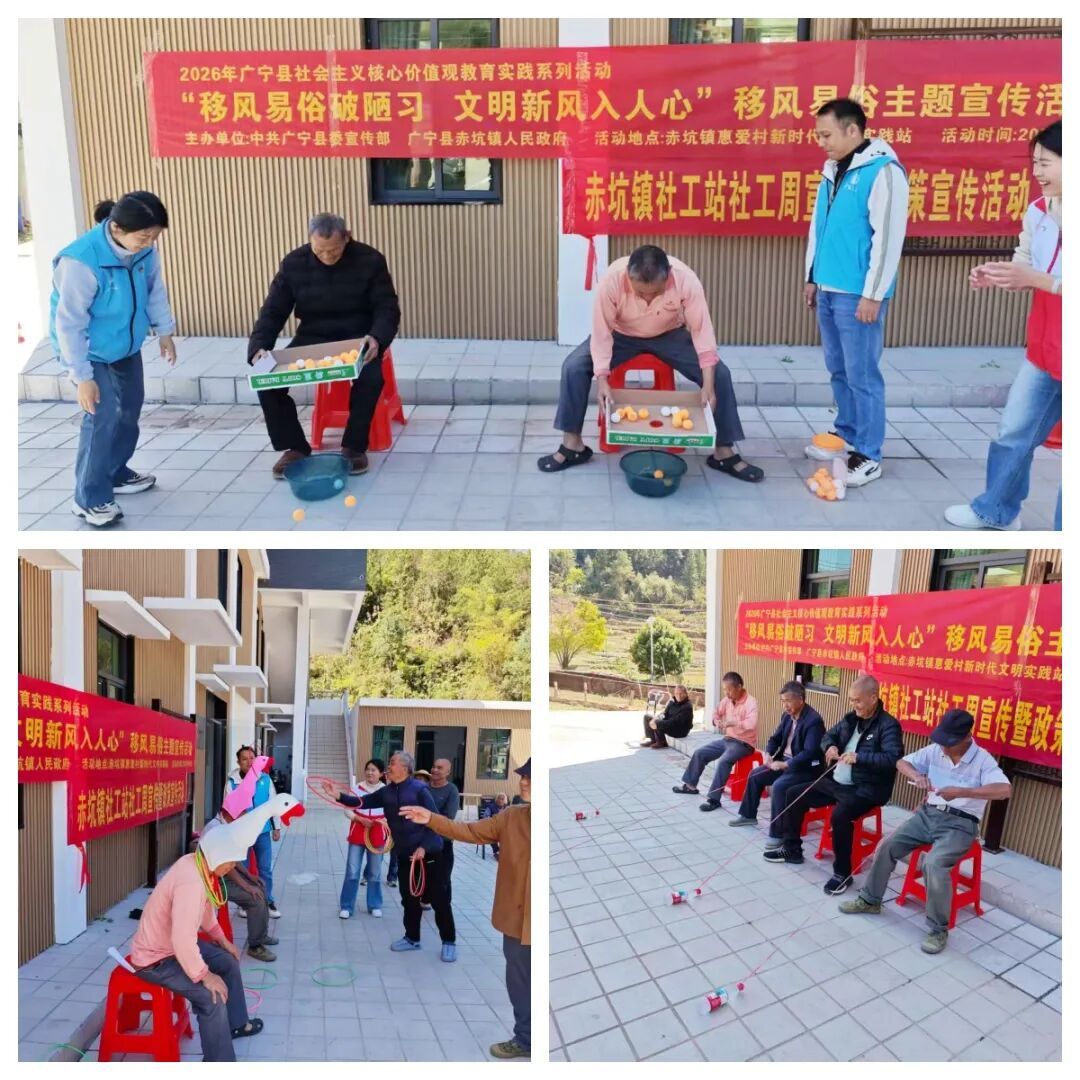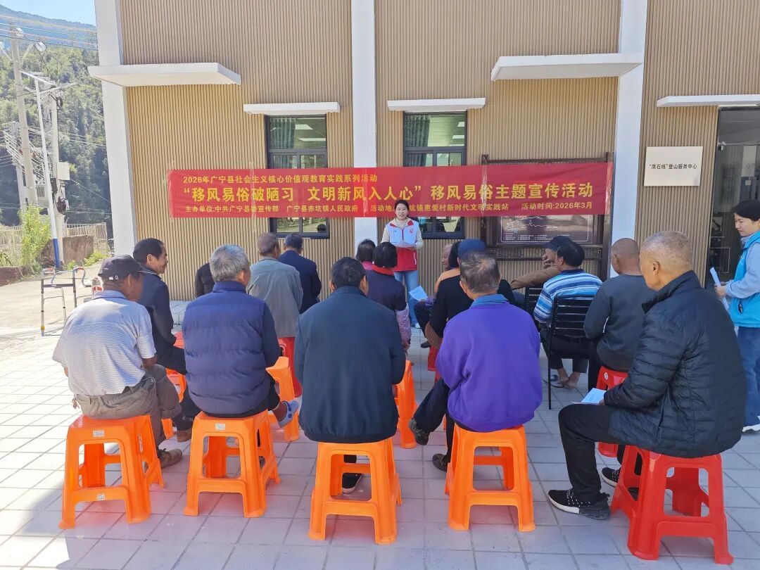 3月12日,赤坑镇新时代文明实践所联合镇社工站、惠爱村新时代文明实践站,在惠爱村游客服务中心广场开展“移风易俗破陋习 文明新风入人心”主题宣传活动,以“宣讲+趣味游戏”形式吸引众多村民群众参与。