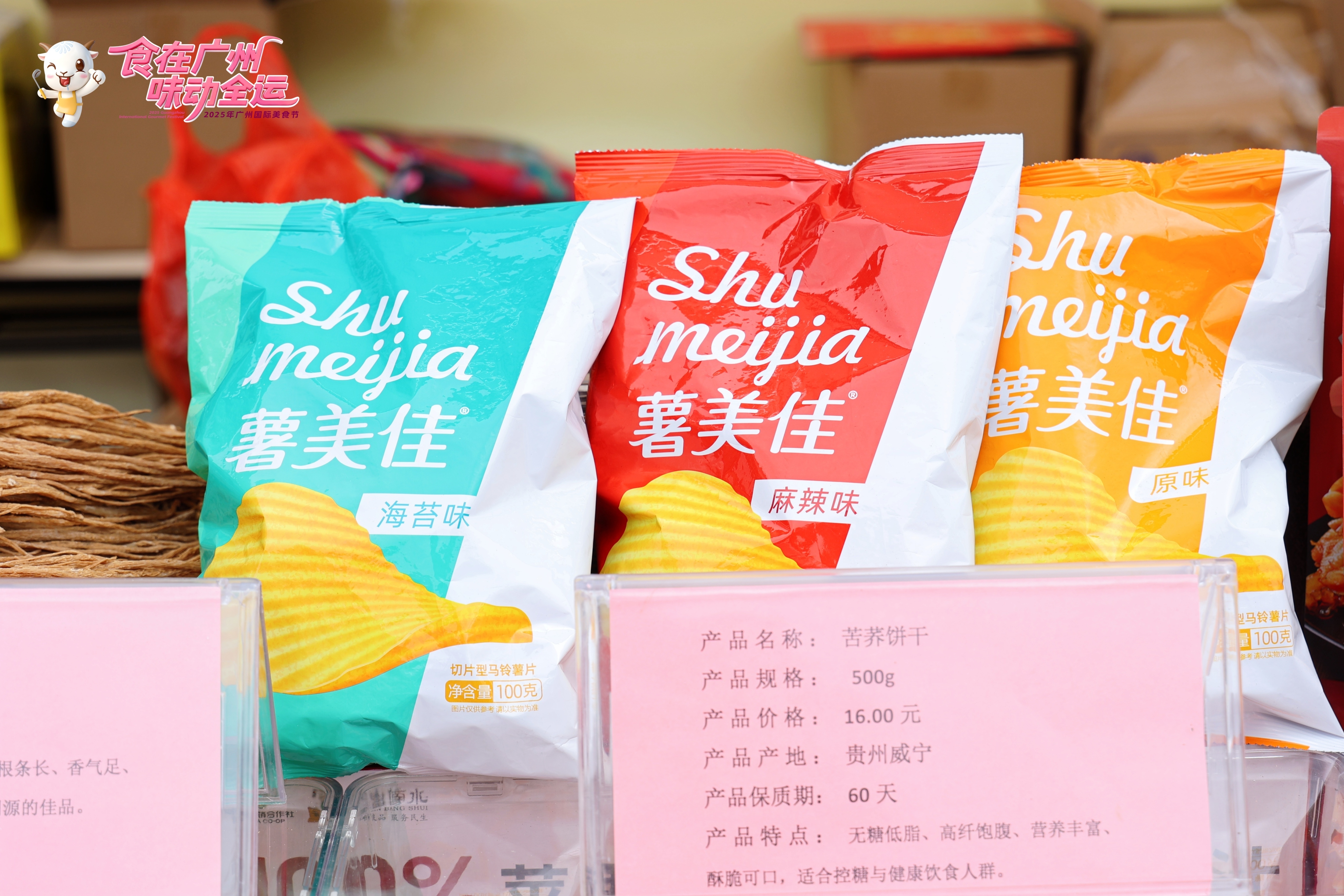 本次参展的产品阵容丰富多元,涵盖威宁、赫章、金沙三大贵州特色产区的优质好物,而这份“家底”的厚植,离不开东西部协作对贵州特色产业的精准赋能。来自威宁2300米高海拔深山的苹果堪称“明星产品”,高原充足光照与巨大昼夜温差造就其脆甜果肉与浓郁果香,配套鲜榨苹果汁保留鲜果本味,成为健康饮品热门之选。更值得关注的是威宁带来的十几款药食同源产品,涵盖根茎、果类等多个品类——这些产品能形成规模化参展阵容,正是番禺区帮扶工作队联合当地农业部门,引入标准化种植技术、建立质量溯源体系后的成果,既凸显了贵州“天然药库”的资源禀赋,更让“药食同源”的生态优势转化为符合大湾区消费需求的产品竞争力。