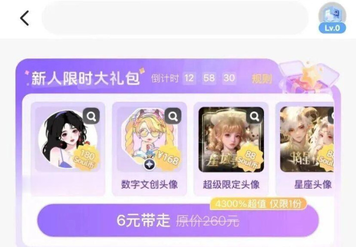 用户也可以购买“Soul币”来兑换虚拟形象(Avatar)、虚拟礼物、推荐特权等。虚拟礼物的价格从对应1.6元的“甜甜圈”、“彩蛋”,到价值5333元的“比翼双飞”不等。